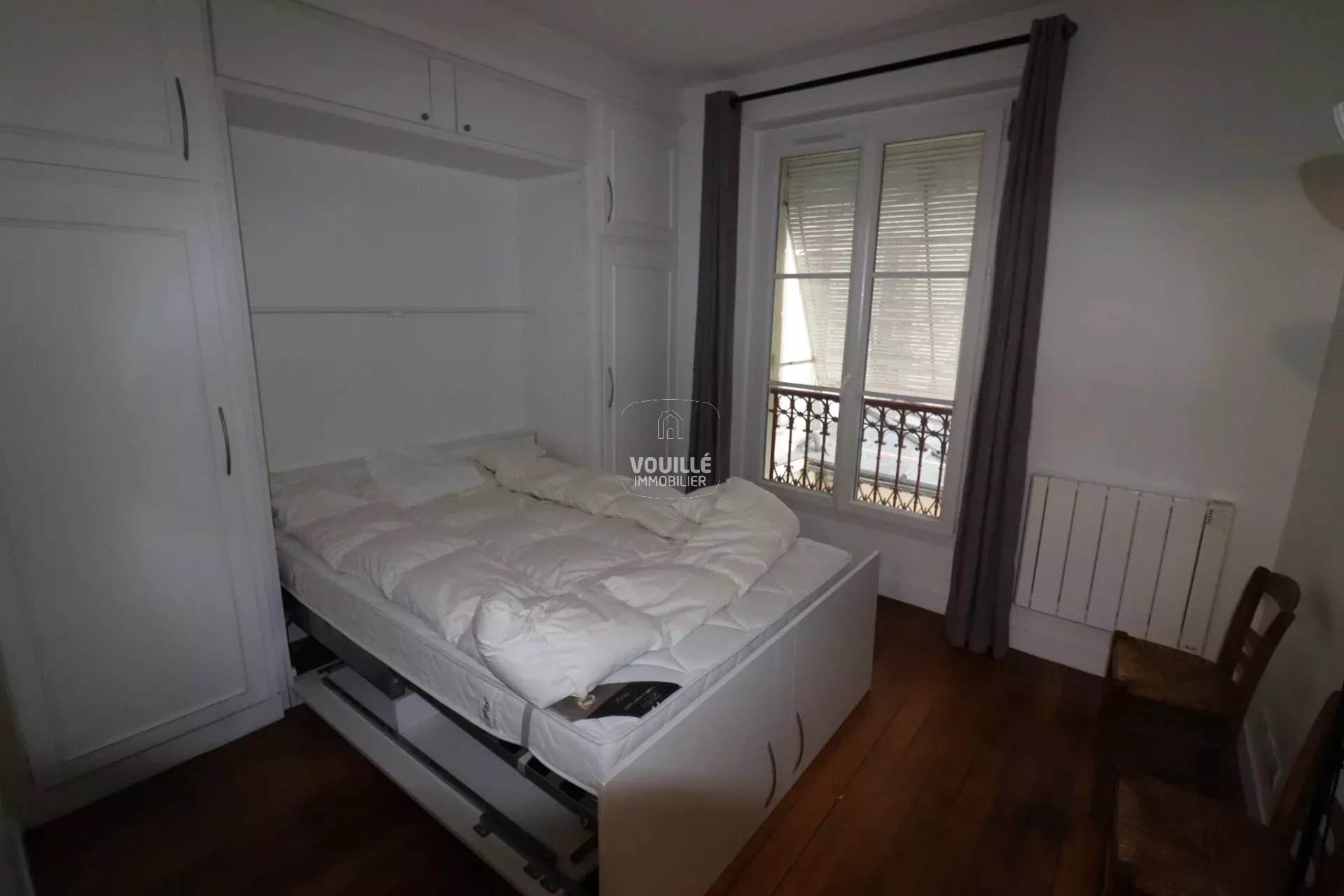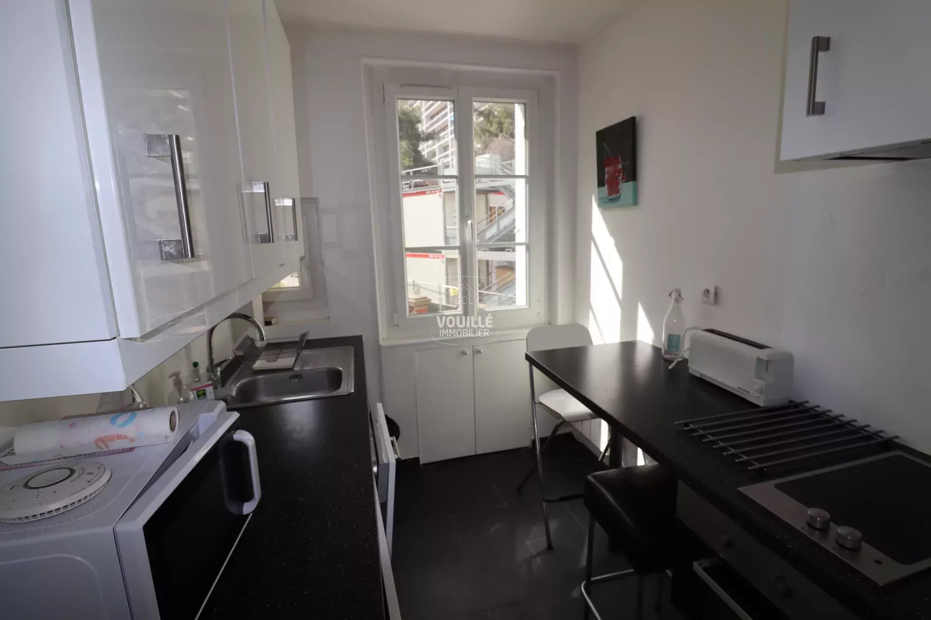 Nous avons un coup de coeur pour ce bel appartement de deux pièces principales, en excellent état, que nous louons en meublé avec un bail d'un an renouvelable. Il se trouve au premier étage sans ascenseur d'un petit immeuble de 4 étages récemment ravalé et dont les parties communes viennent d'être rénovées. L'immeuble se situe dans une petite rue calme à 200 mètres du métro Saint Jacques, 700 mètres du métro Denfert Rochereau (ligne 6) et à 900 mètres de la très commerçante rue Daguerre. L'appartement bénéficie d'une belle hauteur sous plafond lui conférant des volumes agréables à vivre et d'un très bon plan optimisé avec une entrée, dotée d'un placard, desservant une cuisine donnant sur la rue, une salle d'eau communiquant avec des toilettes séparées équipées d'une fenêtre, un séjour et une chambre lumineux et calmes sur cour, exposition Sud Ouest. Le chauffage et l'eau chaudes sont individuels électriques. L'appartement est équipée de fenêtres double vitrage et de convecteurs radiants performants.
