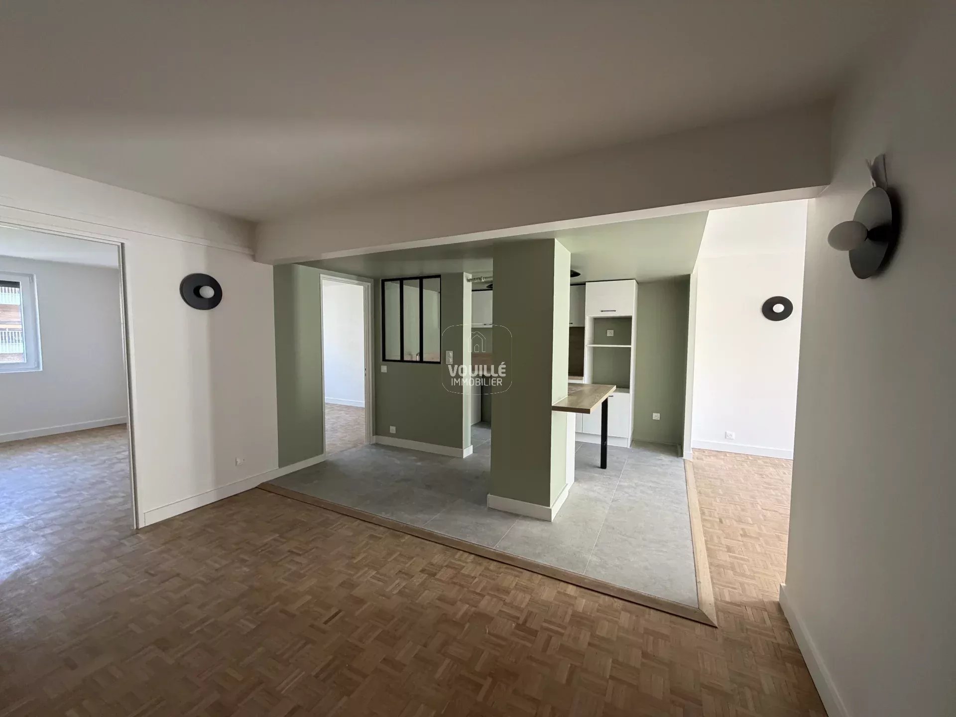 Nous avons un coup de coeur pour cet appartement de 3 pièces principales refait à neuf, lumineux et calme, traversant Est / Ouest, sur rue et sur cour, qui se trouve au quatrième étage avec ascenseur d'un petit immeuble "années 1960" bien entretenu, à deux pas du parc Georges Brassens et des commerces. Le bien bénéficie d'un très bon plan avec un grand séjour en L de 35,77 mètres carrés avec une cuisine ouverte et un balcon sur rue, deux belles chambres de 12 mètres sur cour, une salle d'eau avec un espace toilettes séparé dotée d'une fenêtre. Le chauffage et l'eau chaude sont collectifs. Une cave saine et un emplacement de parking complète le bien.